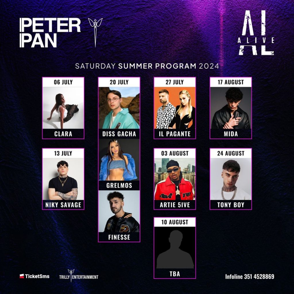 ALive è la serata del Peter Pan di Misano Adriatico che propone live e showcase con i migliori nomi del panorama italiano più attuale e che torna in versione estiva da inizio luglio a fine agosto 2024.